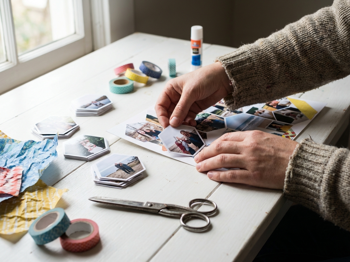 Ces murs inspirent également la création de collages photo hexagonaux, souvent réalisés en :