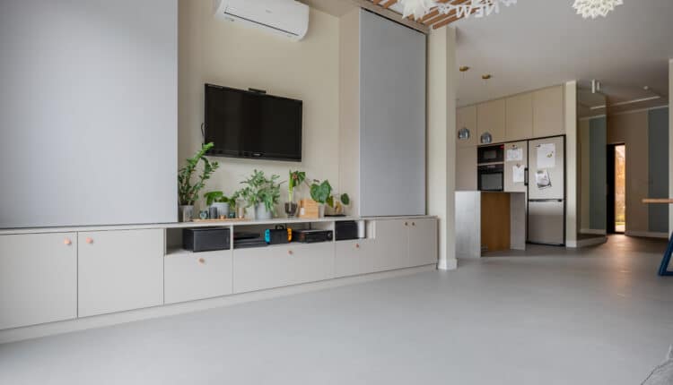 Les sols en microciment sont également une excellente option pour les cuisines. Ils sont résistants aux taches et faciles à nettoyer, ce qui est essentiel dans une zone où les liquides renversés et les taches sont fréquents. En outre, le microciment résiste aux températures élevées, ce qui permet de l’utiliser en toute sécurité à proximité d’une cuisinière ou d’un four.